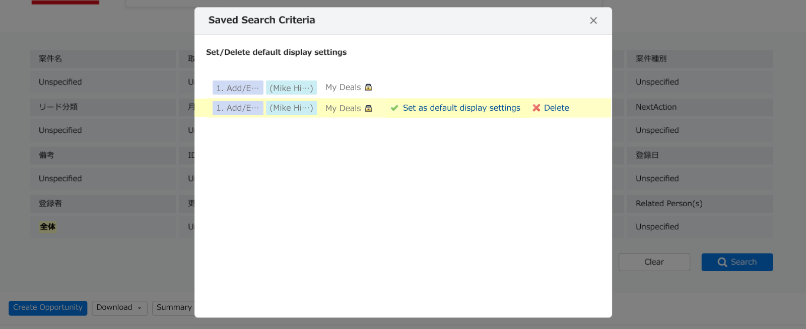 The Opportunity Master initially displayed when creating a new Opportunity will be the Opportunity Master selected when saving search conditions.