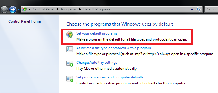 2. Click on "Set your default programs".