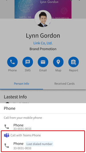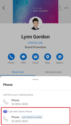 You can make calls using the Teams Phone feature directly from the Sansan Mobile App.