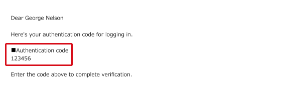 The code will be sent to your login email (and, if set up, your secondary email). Enter the authentication code shown in the received email.