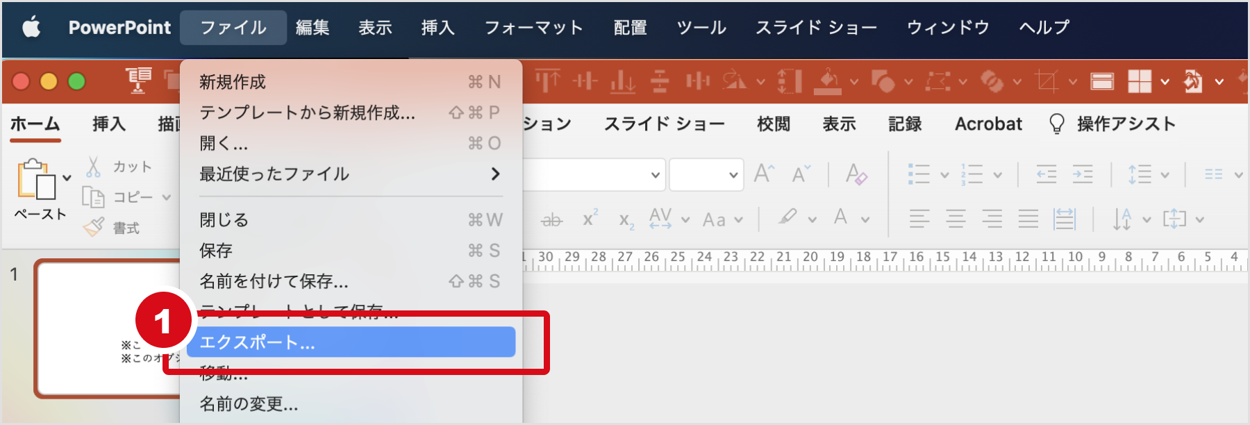 1.ロゴ画像作成後、[ファイル] > [エクスポート] をクリック