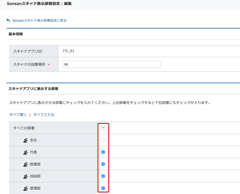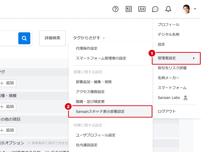 管理者は、Sansanスキャナ (タブレットPC) に表示される部署を変更することができます。ここでは本機能のご利用方法についてご案内いたします。