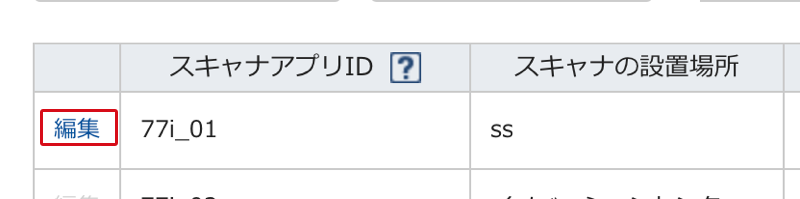 3. 変更を行うスキャナアプリIDを探し、[編集] をクリックします。