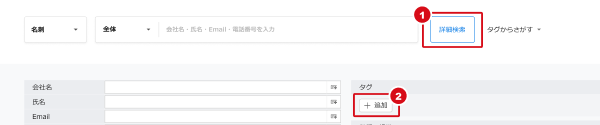 1. 送りたくない名刺を「メールアドレス」で検索し、タグBをつけます