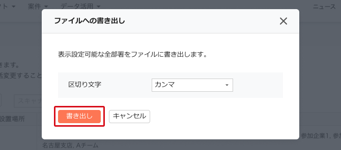 4. 書き出すCSVファイルの区切り文字を選択して[書き出し]をクリックします。
