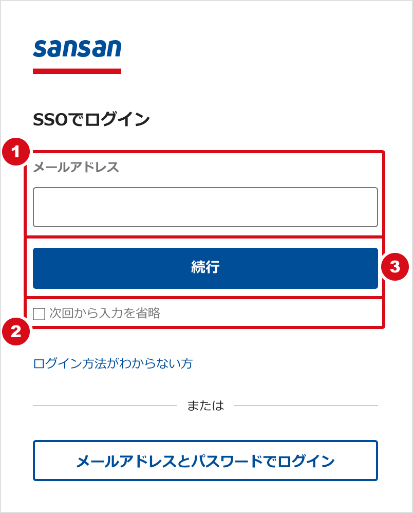 ・Sansanへログインする / ログインのことで困ったら(メールアドレスとパスワードを使用してログインする)