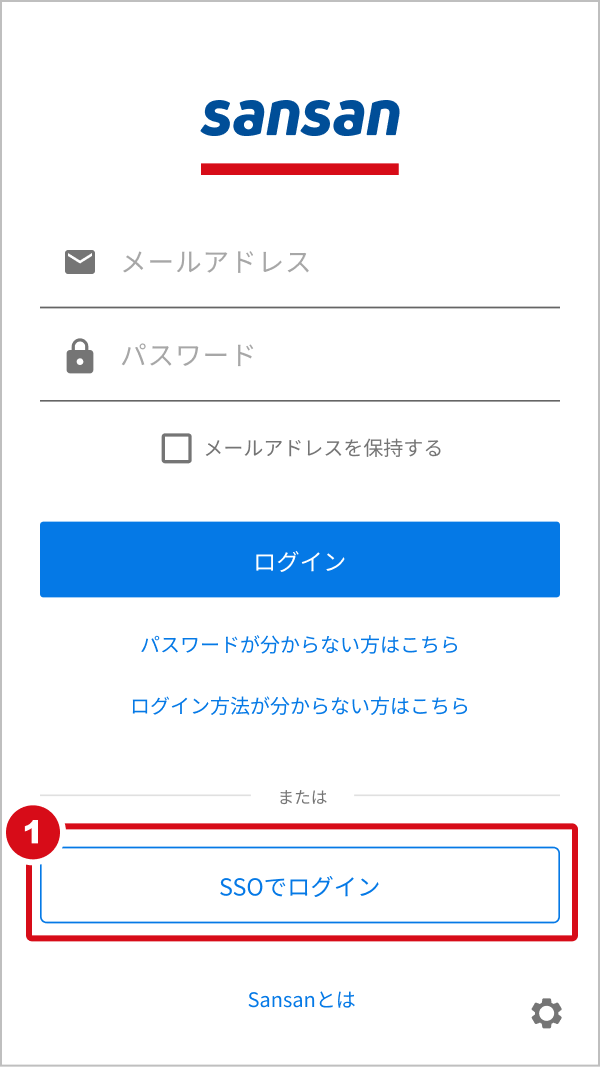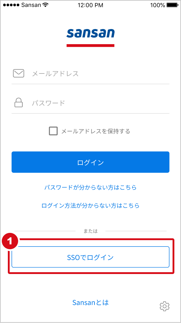 1. Sansanアプリをタップし、ログイン画面を表示します。