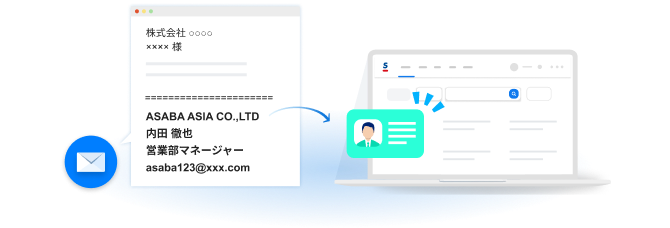 メールだけでやりとりする相手の顧客情報を、名刺データと同様の形式で一元管理できます。