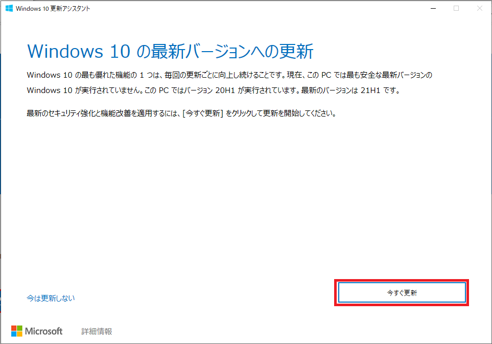 ページ内の「今すぐアップデート」ボタンをクリックします。