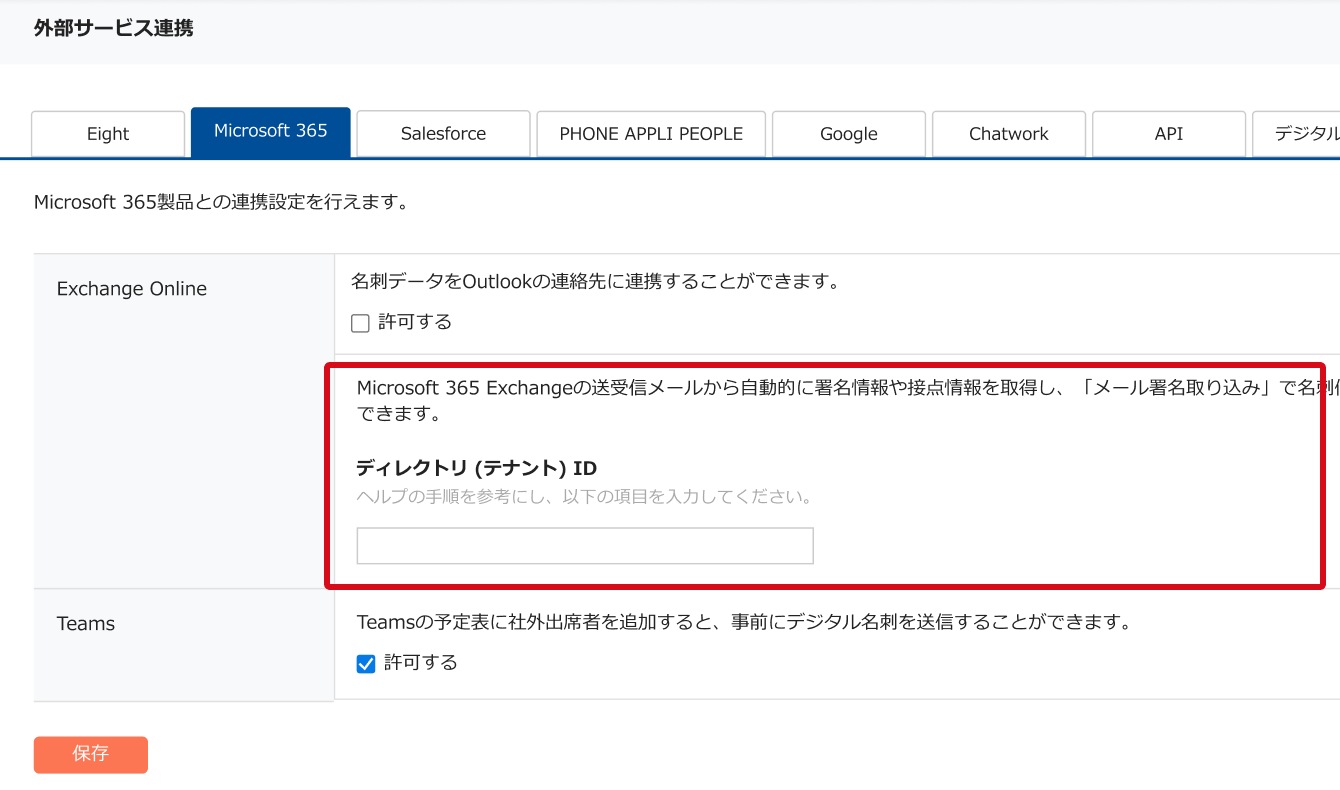 ※ テナント IDは、[メール署名取り込み]と[スマート接点管理]で共用となります