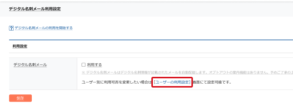 ユーザーがデジタル名刺メールを「利用する」か「利用しない」か、管理者が設定できます。