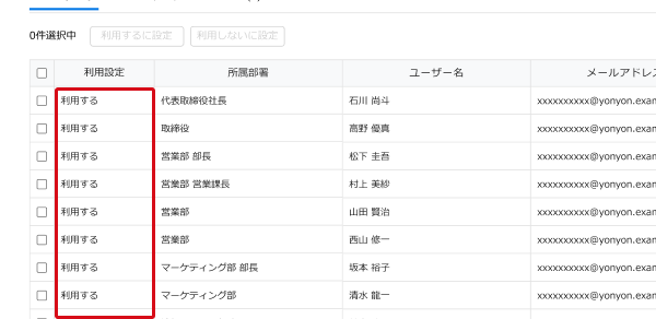 ※ 初期設定は全ユーザーが「利用する」で設定されています。