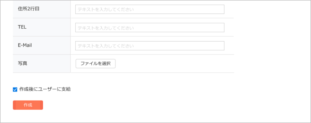 [作成後にユーザーに支給] にチェックを入れて [作成] を実行した 場合、次の画面で支給対象者を選択し支給することができます。