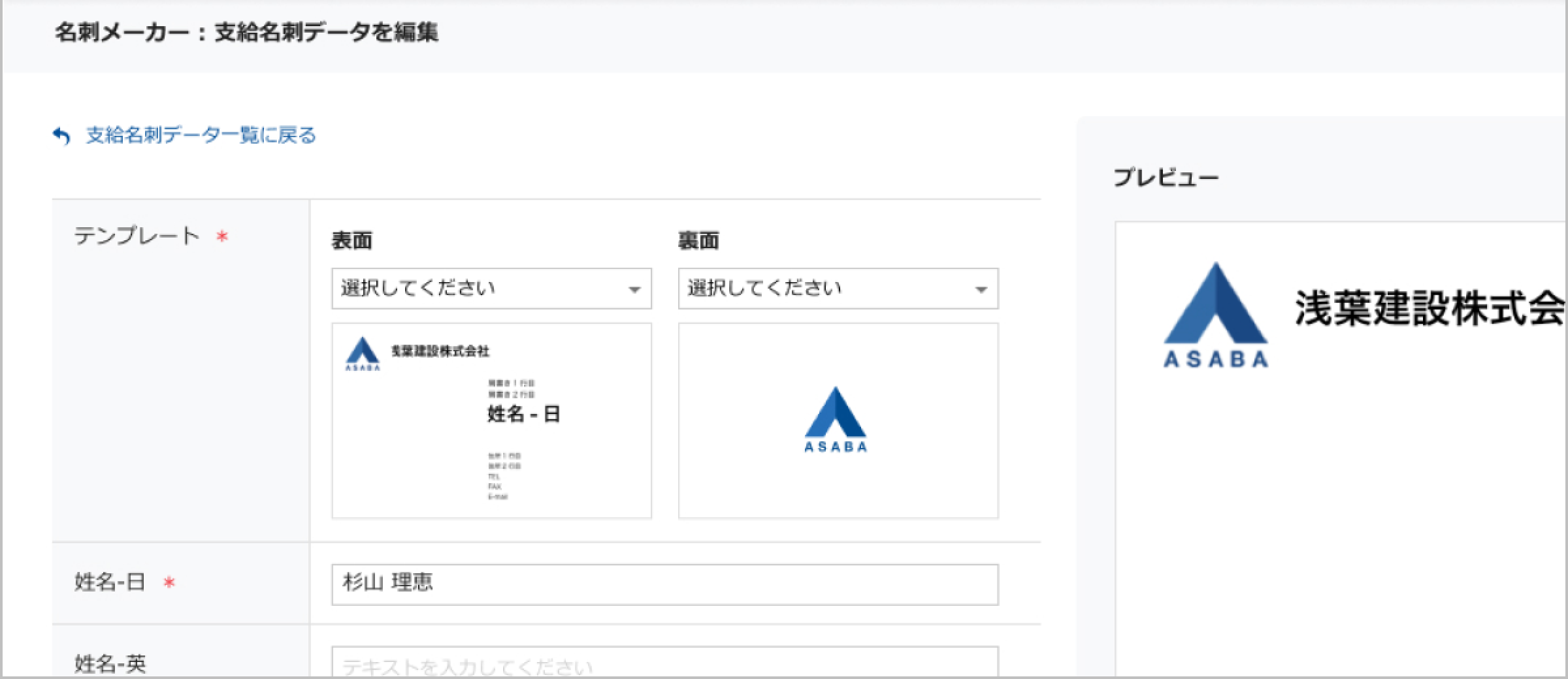 2. [支給名刺データを編集] 画面で名刺情報を編集します。