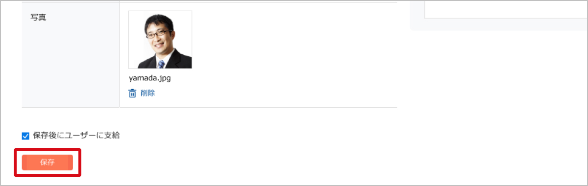 [保存後にユーザーに支給] にチェックを入れて [保存] を実行した 場合、次の画面で支給対象者を選択し支給することができます。