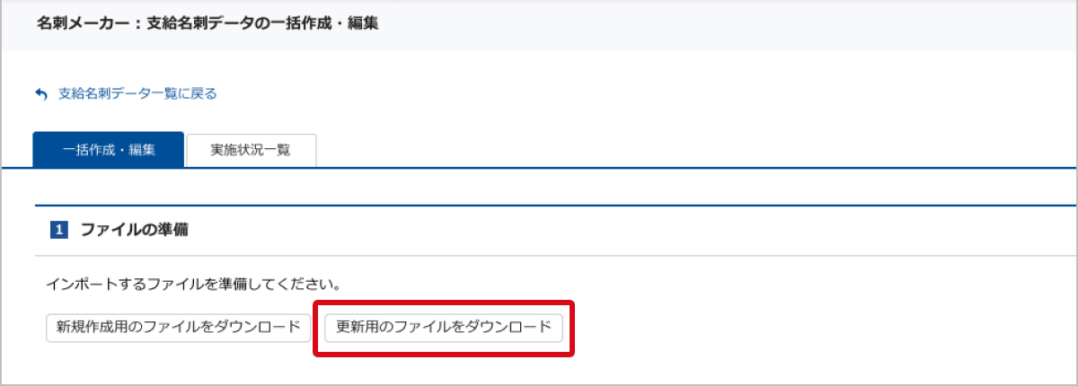 2. [更新用のファイルをダウンロード]ボタンをクリックします。 専用フォーマット(CSVファイル)がダウンロードされます。