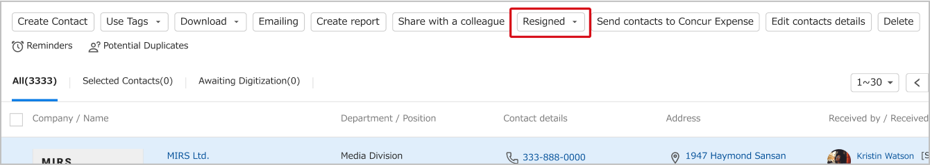 Setting contacts as resigned – details here.