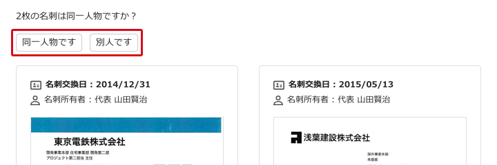 | 目的 | 希望视为相同人物并整理成1张“名片” | 希望视为不同的人 | 希望视为相同人物并整理“人物” | 希望视为不同的人 | |
