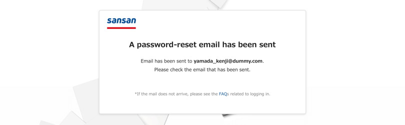 * Even if you make a mistake inputting your email address, "A password-reset email has been sent" will still be displayed. If no email arrives, please check what you input again.