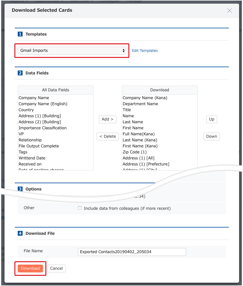 After downloading the CSV file from Sansan, import it to Google Contacts.